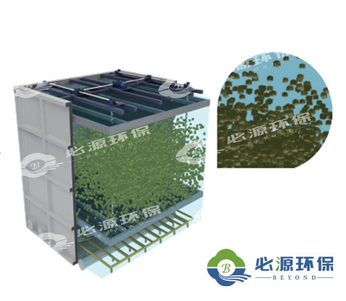 Biotank多相生物反應箱采用三維立體多孔彈性填料,掛膜迅速,啟動快,生物量大,處理效果好。菌群類別多樣化,對COD、氨氮等去除率高。反應箱內部設置專用機械清洗系統,設備高度一體化,無需沉淀池、反沖水池、反沖系統等繁雜系統。工藝設備化、模塊化設計,加工制造均在車間內完成。立體填料彈性好、孔隙率高、有效好氧容積大、現場安裝簡便易行、安裝周期短。
