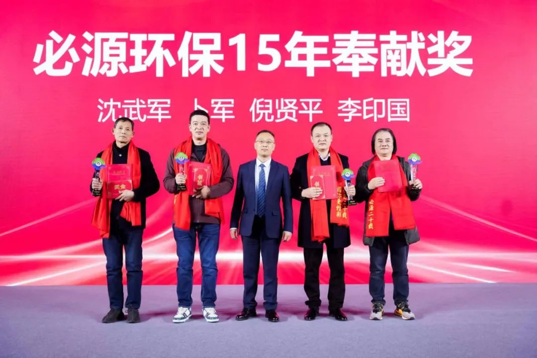 感謝你們在這十五年撒下的辛勞汗水,在每一份的成果里,都有你們播撒的不懈努力。你們用專業的視角,獨到的管理,任勞任怨的行動,為我們詮釋了忠誠與責任。活動現場頒發了十五年奉獻獎、十年奉獻獎、愛崗敬業獎、研發創新模范獎和突出貢獻團隊獎等多個獎項,以表彰在公司發展中做出杰出貢獻的員工。得獎者們紛紛表示,將繼續努力工作,為必源環保的未來發展貢獻自己的力量。