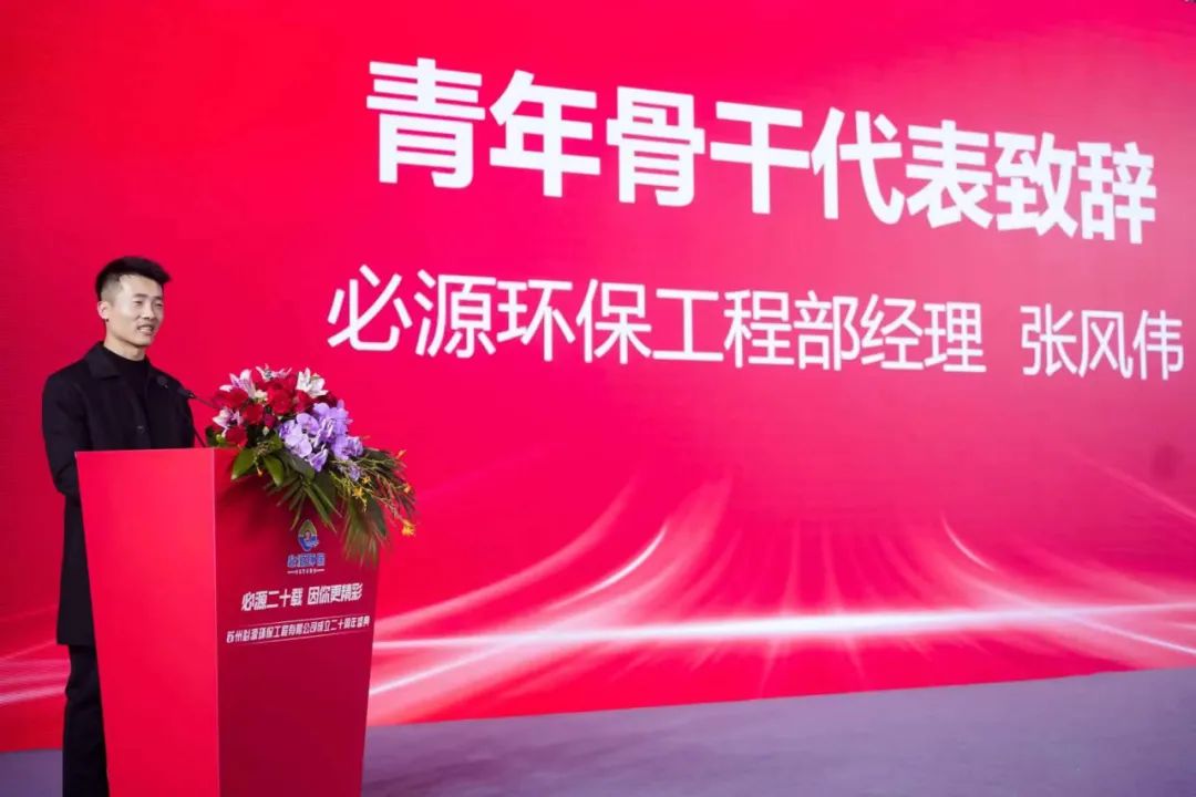 必源的發展與輝煌,都離不開同仁們的辛勤付出,我們的快速騰飛,同樣源于所有同仁的兢兢業業,回首二十年的發展,有陪伴公司一起成長的老員工,有剛加入必源這個大家庭的新成員,在必源這個溫暖的大家庭,我們結伴走過每一個春夏秋冬。正是因為每一個不同年齡層必源同仁的付出,汗水,才有我們必源的今天。公司老中青員工代表也在現場發表了講話,分享了他們在必源環保的工作經歷和感悟。他們表示,必源環保是一個充滿活力和機遇的平臺,他們將一如既往地為公司的發展而努力。
